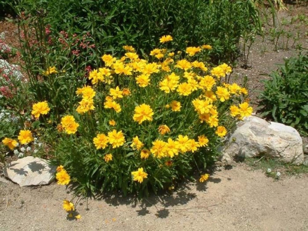 تبدأ النباتات في إنتاج أزهار صفراء شبه مزدوجة ومزدوجة بسرعة وتستمر في الإزهار حتى الصقيع