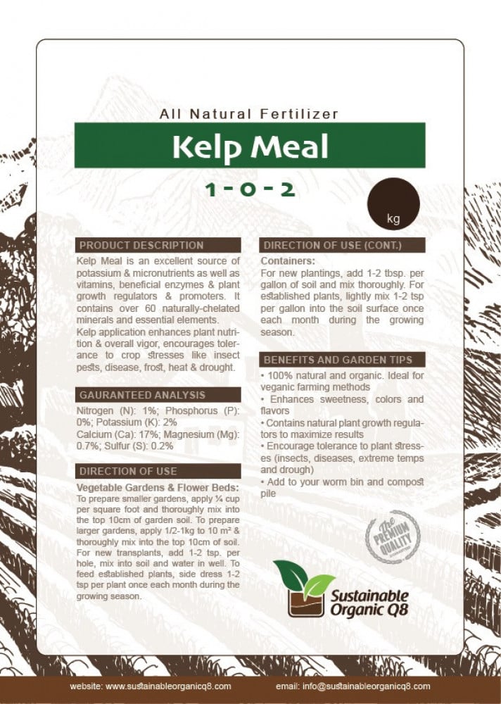 Kelp Meal is an excellent source of potassium & micronutrients as well as vitamins, beneficial enzymes & plant growth regulators & promoters. It contains over 60 naturally-chelated minerals and essential elements.