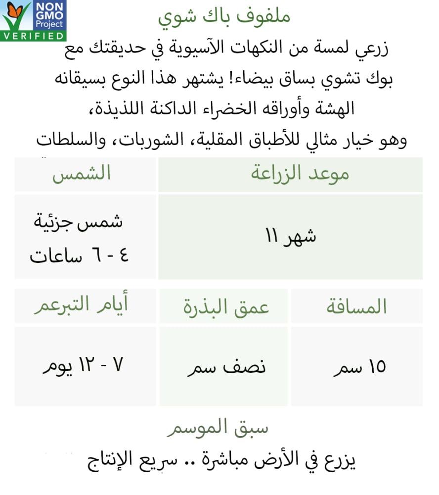 بذور باك شوي - White Stem Pak Choi Cabbage Seeds