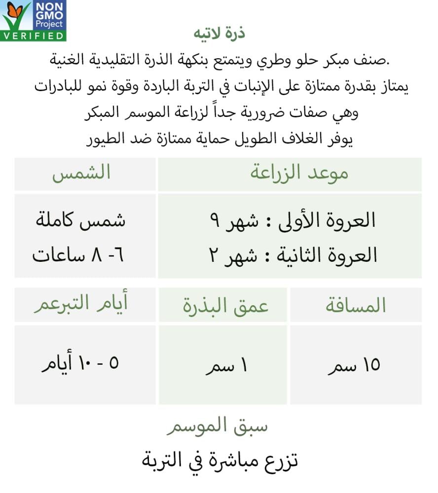 حلوة وطرية بنكهة ذرة تقليدية غنية. تتميز بإنبات ممتاز في التربة الباردة وقوة نمو الشتلات، وهو أمر ضروري للحصاد المبكر. يوفر غلافها الطويل حماية ممتازة من الطيور. يصل ارتفاع النباتات إلى 1.8 متر. بذور معالجة.