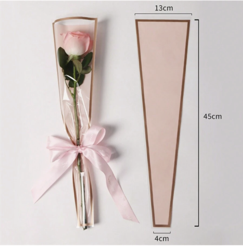 ورق تغليف ورد شفاف بخلفية وردية وأطراف ذهبية – 5 قطع