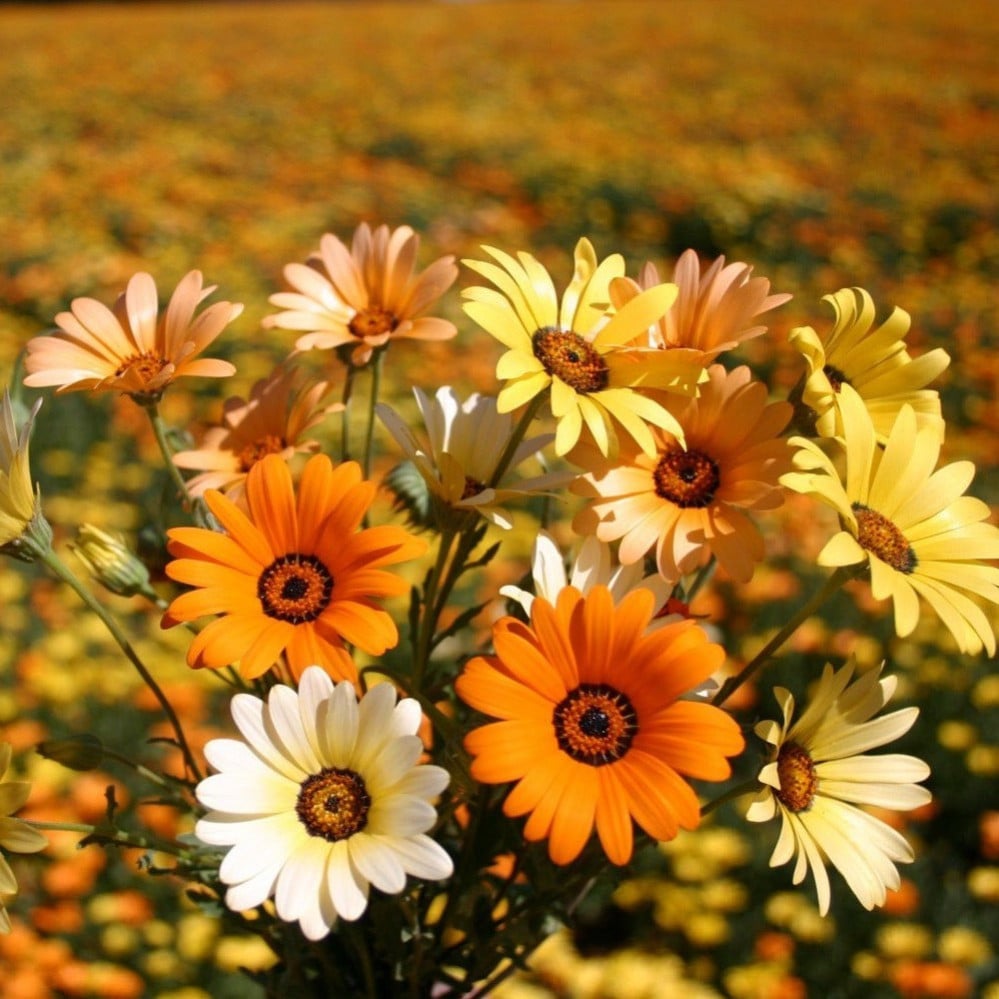 من الازهار الأفريقية البرية .. بدرجات اللون البرتقالي والاصفر والأبيض