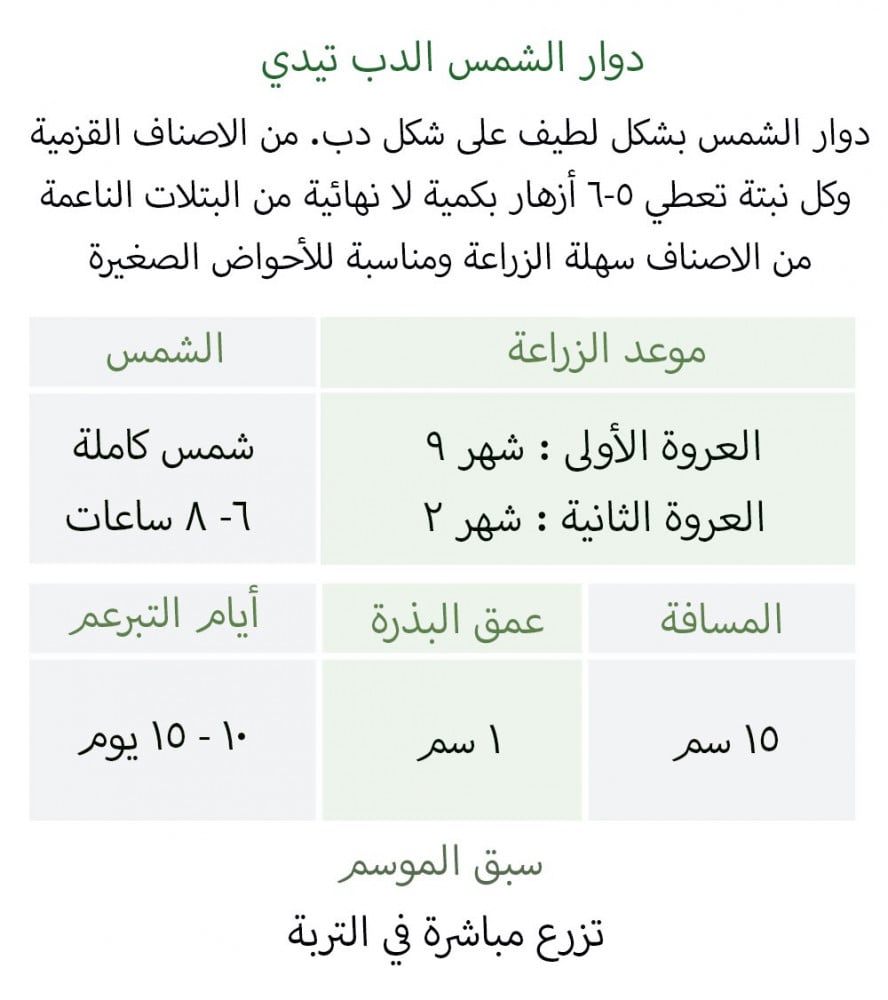 موعد الزراعة : العروة الأولى : شهر 9 ميلادي / العروة الثانية : شهر 2 ميلادي