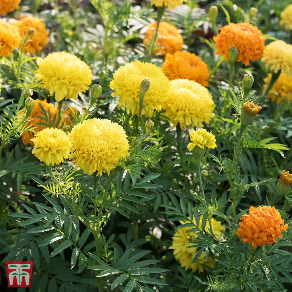 ازهار ملونة بلون البرتقالي والذهبي الغني والأصفر الليموني