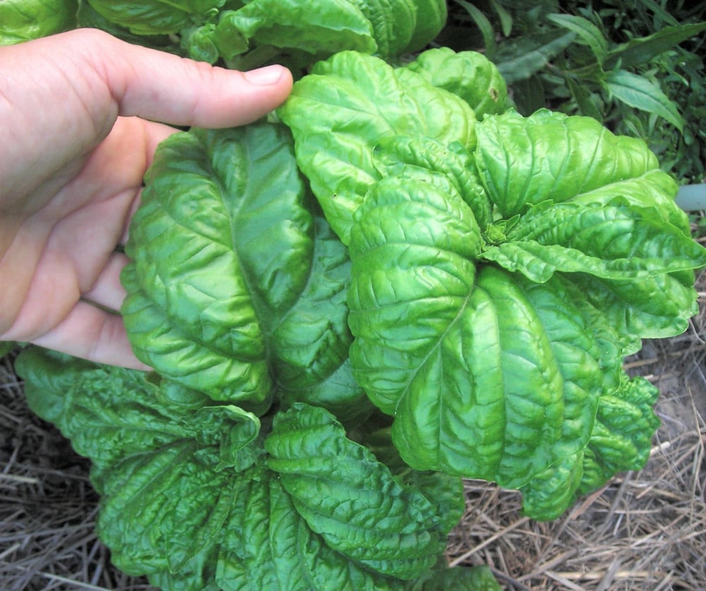 cinnamon, Genovese, lemon, lime, large leaf, and 'Dark Opal' basils.