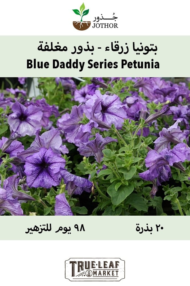 بتونيا زرقاء - بذور مغلفةالكمية : 20 بذرةالتزهير : 98 يومنسبة الانبات : 80٪ بتونيا بلون أزرق جميلسهلة الزراعة من البذور ولا تتطلب عنايةقطر الازهار 7 -10 سم