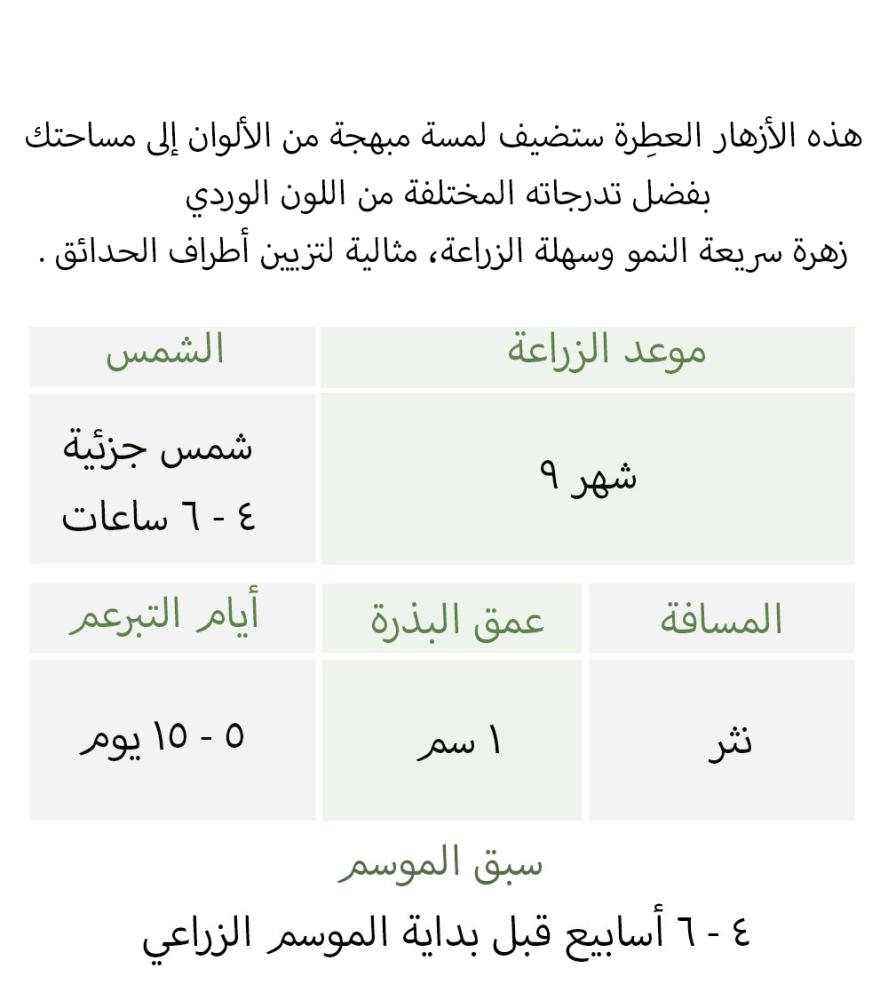زهرة سريعة وسهلة النمو، تُشكّل حدودًا رائعةً حول حديقة صخرية أو حتى تتدلى فوق جدرانها الصخرية.