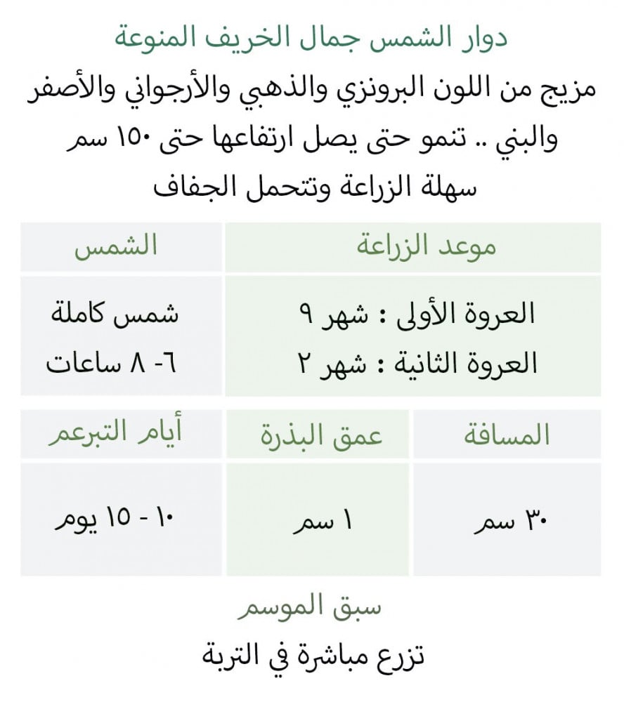 موعد الزراعة : العروة الأولى : شهر 9 ميلادي / العروة الثانية : شهر 2 ميلادي