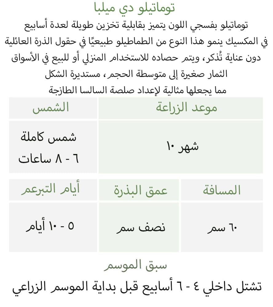 • سبق الموسم : تشتيل داخلي 4-6 أسابيع قبل دخول الموسم الزراعي