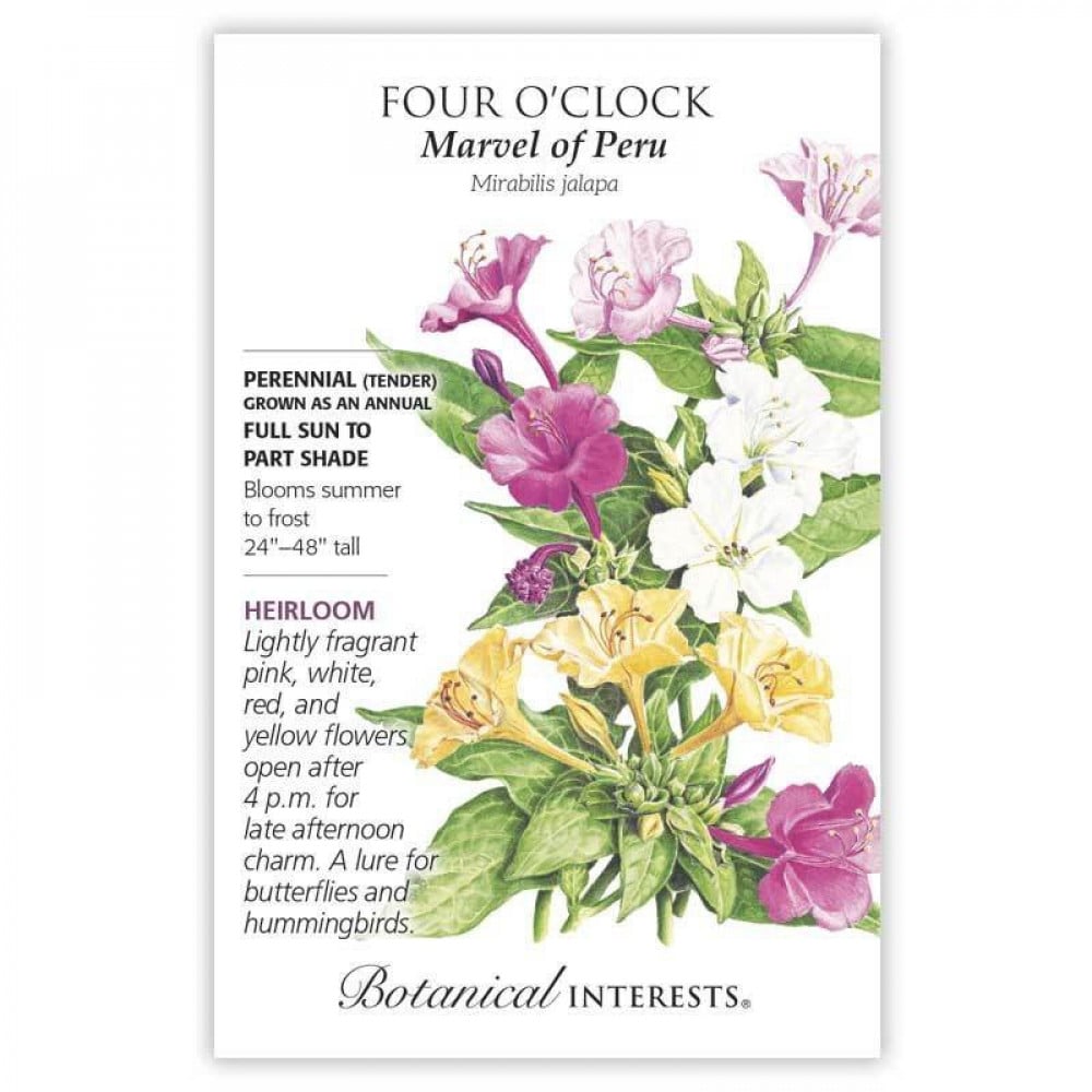صنف متوارثتم تسميته بسبب الإزهار بعد الساعة 4 مساءً ، ويزدهر Four O’Clock سريع النمو في أي مكان تقريبًا بما في ذلك البقع الساخنة والرياح ويتحمل معظم أنواع التربة.يتحمل صيفنا الحار تجذب الأزهار الأنبوبية المعطرة لملقحات.