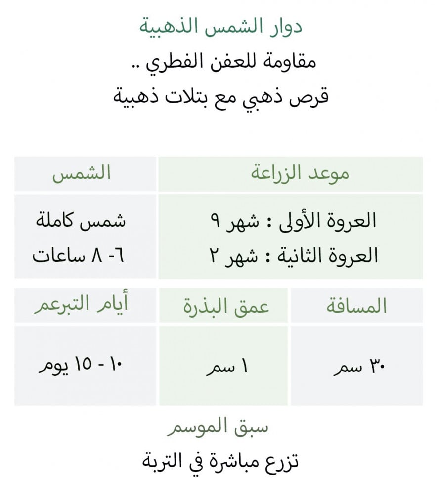 موعد الزراعة : العروة الأولى : شهر 9 ميلادي / العروة الثانية : شهر 2 ميلادي