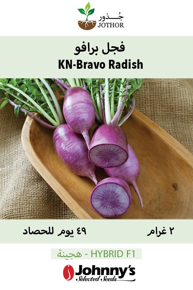 فجل ارجواني بنكهة حلوة .. يتراوح اللون الداخلي من اللون الارجواني الباهت إلى الابيض