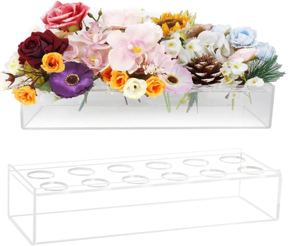مزهرية أكريليك عصرية بتصميم مستطيل أنيق تحتوي على 12 فتحة مخصصة لتنسيق الزهور 🌸