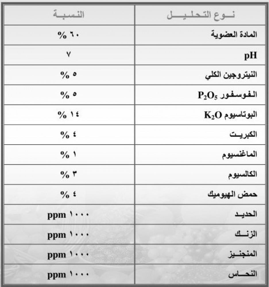 1. يحتوي نسبة عالية من البوتاسيوم الميسر في صورة صالحة لامتصاص النبات .